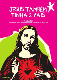 2. Como é sabido, o referido cartaz — encimado pelo lema "Jesus também tinha 2 pais" — tem suscitado muitas reacções negativas, inclusive de personalidades do BE ou a ele historicamente ligadas: Marisa Matias, por exemplo, considerou-o "um erro"; por seu lado, Miguel Vale de Almeida escreveu: "Não percebo a razão de uma campanha para celebrar algo já conquistado (e com a Procriação Medicamente Assistida ainda pendente). Também não percebo o recurso à religião, que sempre se defendeu, e bem, ter de estar fora do debate" [DN].