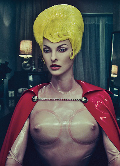 A - É, por certo, um dos mais admiráveis portfolios produzidos, em anos recentes, nos espaços do jornalismo de moda — chama-se "Super Linda", surgirá nas páginas de Setembro da revista W., e resulta da colaboração de uma das figuras emblemáticas das modernas top models, a canadiana Linda Evangelista, com aquele que mais e melhor a fotografou, o americano Steven Klein.