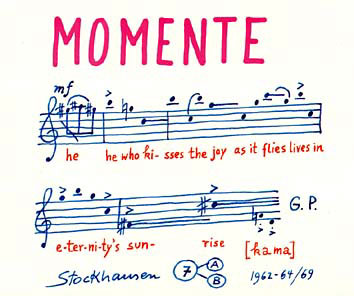 Há uma frase de Mary Bauermeister, a companheira de Stockhausen na época em que trabalhava no projecto de Momente, que descreve em certa medida o papel de transformação profunda desta obra: “se consegues compor um esquema tens de conseguir destruí-lo” (cito de memória). Esta era uma capacidade que Stockhausen não tinha até então, que ganhará através da composição de
