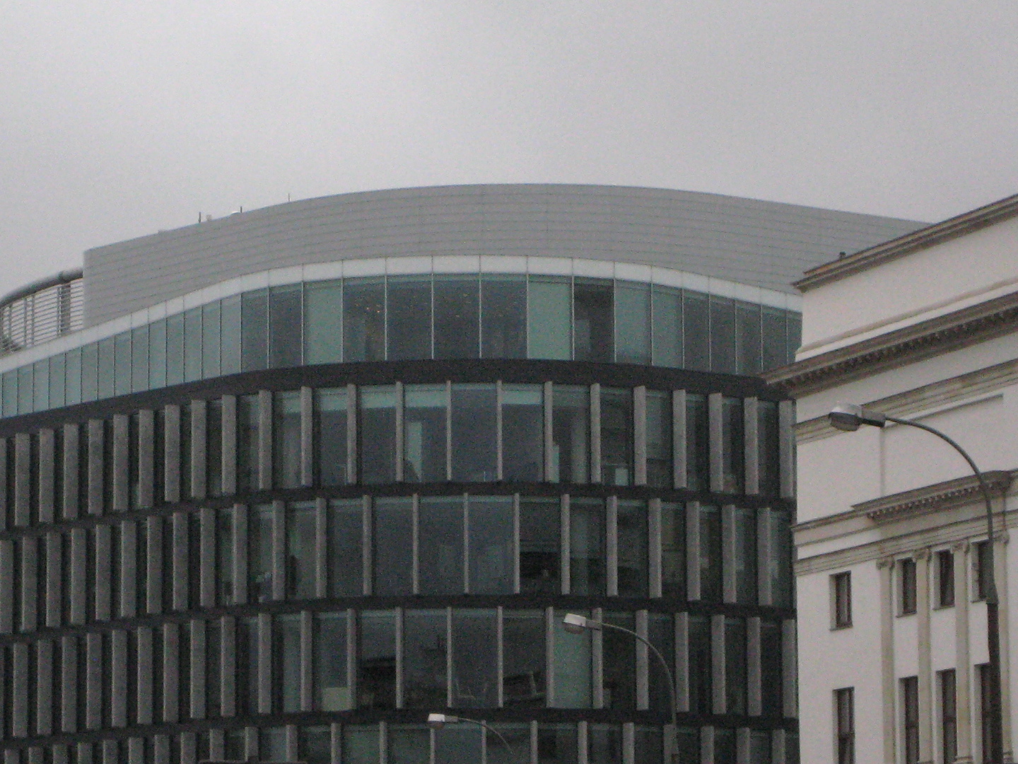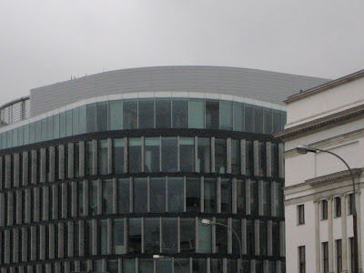 Três olhares num final de tarde enevoada pela Plac Teatralny, em pleno centro de Varsóvia. Na primeira imagem o edifício da Ópera, reconstruído depois da guerra. Na segunda, uma obra recente de Norman Foster.